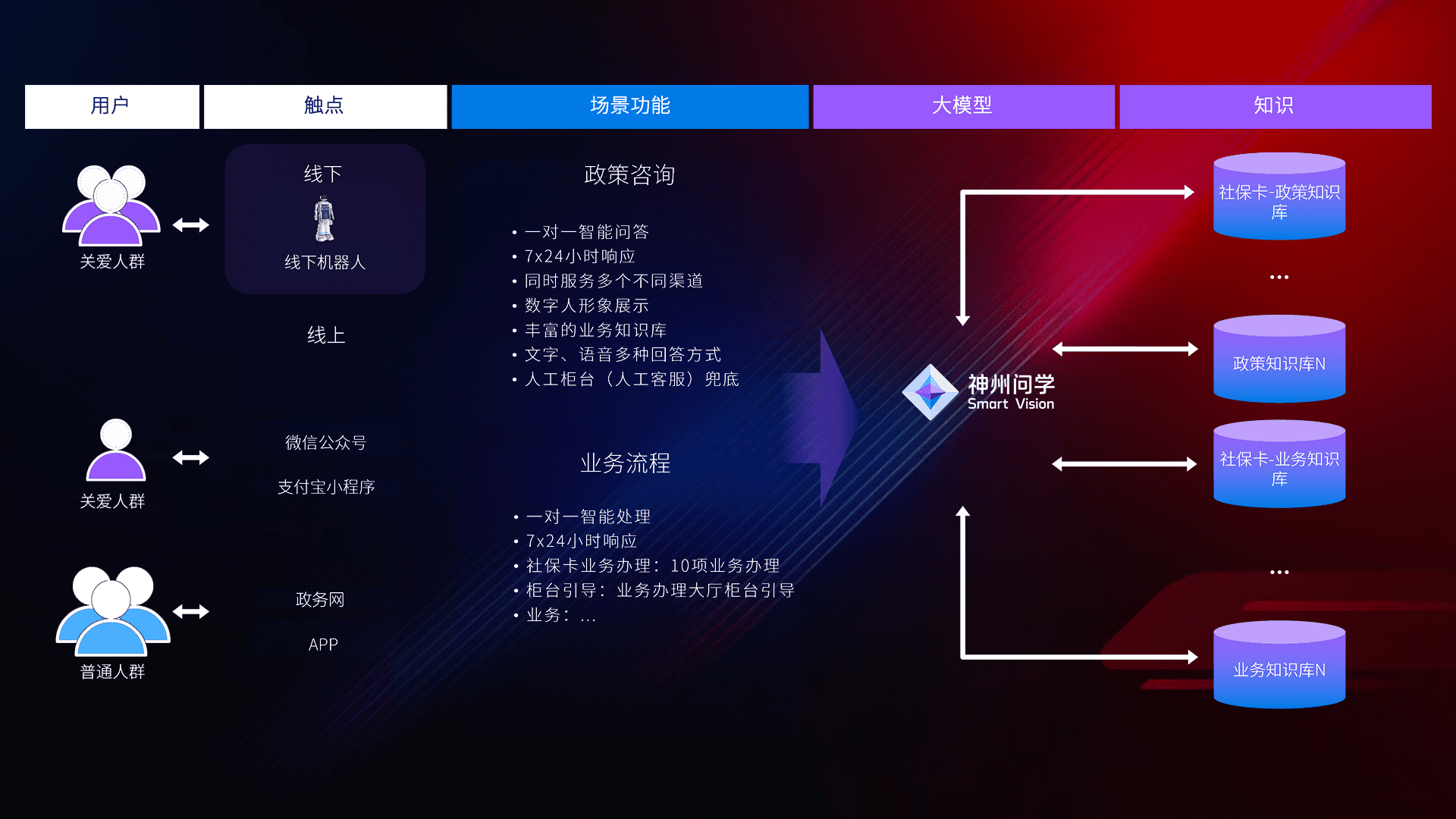 在服务大厅部署客服机器人,,,在线上应用和小程序配置客服数字人,,724小时为群众解答常规问题,,,,客服机器人无法处理的,,转现场人工处理。。